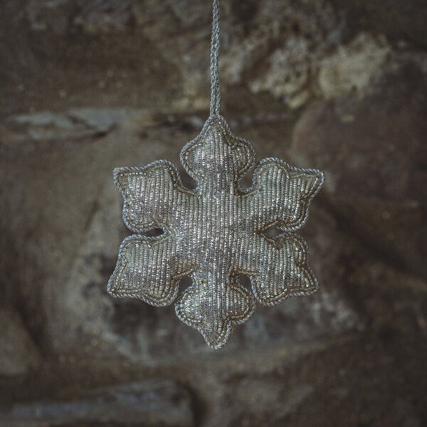 Silver Glass Beaded Snowflake Hanging Garland 2