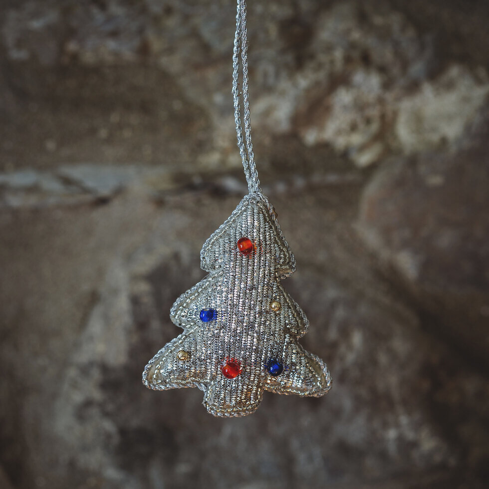 Silver Embroidered Little Tree Decoration Silver Decorations